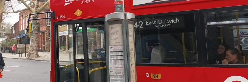 We'll have a table at Grove Vale Library from 2-4.30pm. Come along if you'd like to find out more about the Better Bus Southwark Project. We'll have flyers and paper copies of the survey.
