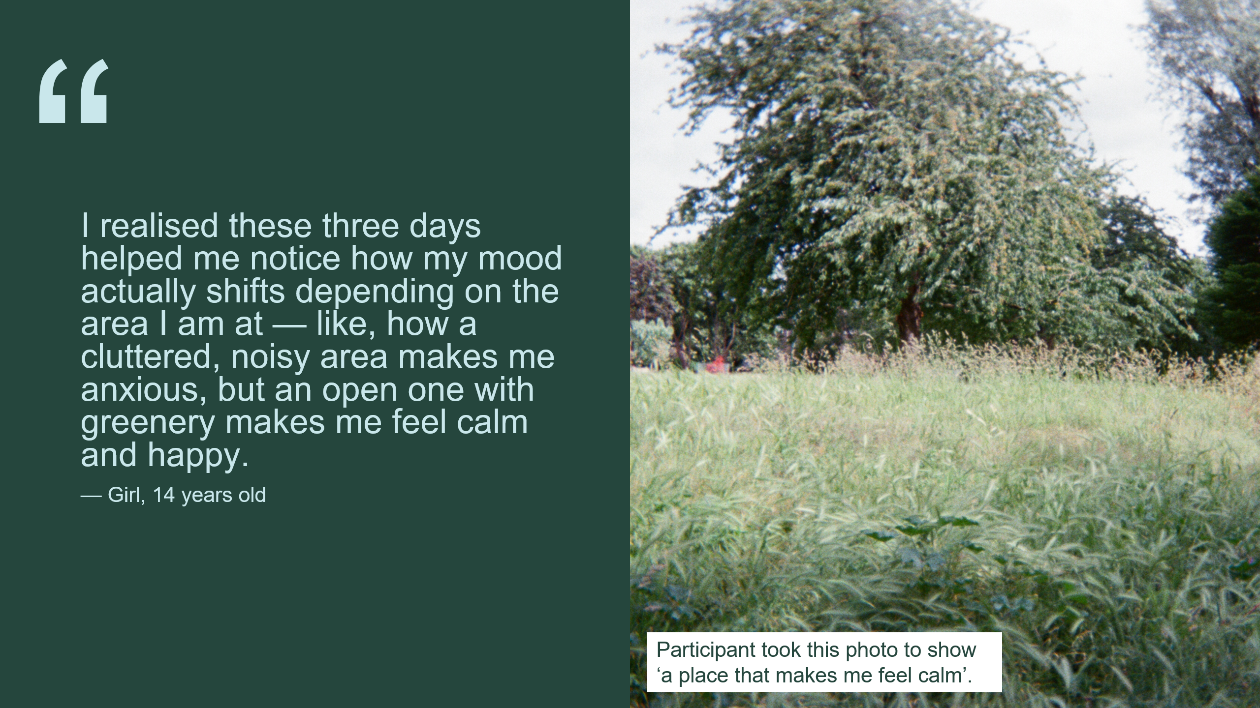 - The hidden emotional landscape of public space. Young people's moods shifted dramatically depending on where they were. Greenery brought calm. Clutter caused stress. Design directly affects how they feel.