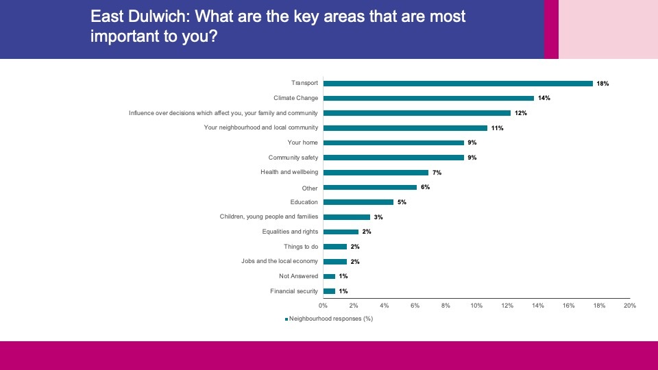 As part of our engagement on our Southwark 2030 strategy, residents were asked to select their top priority from one of fourteen options: